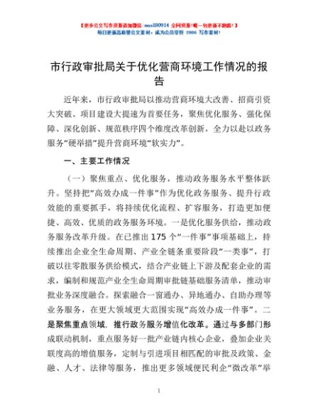 / 市行政审批局关于优化营商环境工作情况的报告