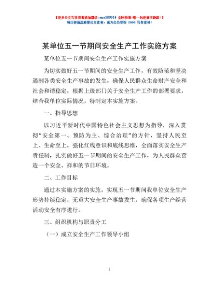 / 某单位五一节期间安全生产工作实施方案