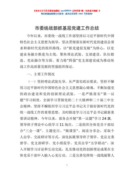 / 市委统战部抓基层党建工作总结