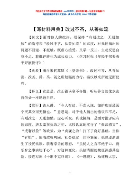 / 【写材料用典】改过不吝,从善如流