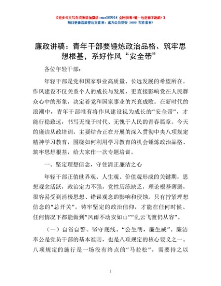 / 廉政讲稿:青年干部要锤炼政治品格、筑牢思想根基,系好作风“安全带”