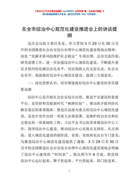 / 在全市综治中心规范化建设推进会上的讲话提纲
