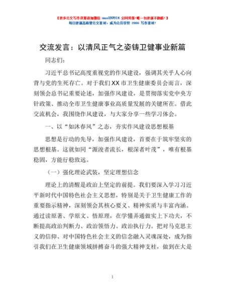 / 交流发言:以清风正气之姿 铸卫健事业新篇