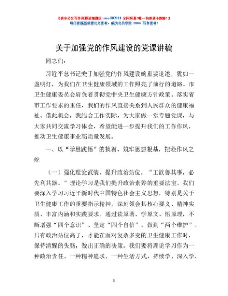 / 关于加强党的作风建设的党课讲稿
