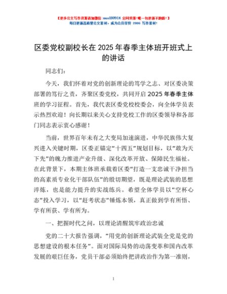 / 区委党校副校长在2025年春季主体班开班式上的讲话