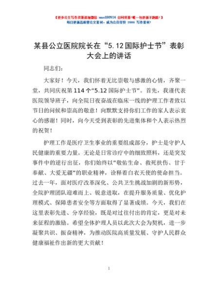 / 某县公立医院院长在“5.12国际护士节”表彰大会上的讲话