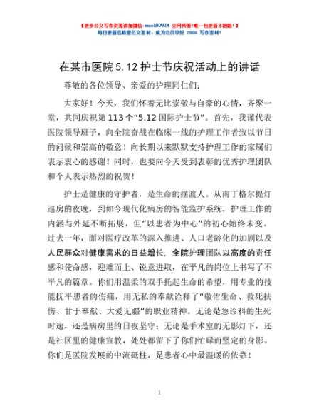 / 在某市医院5.12护士节庆祝活动上的讲话