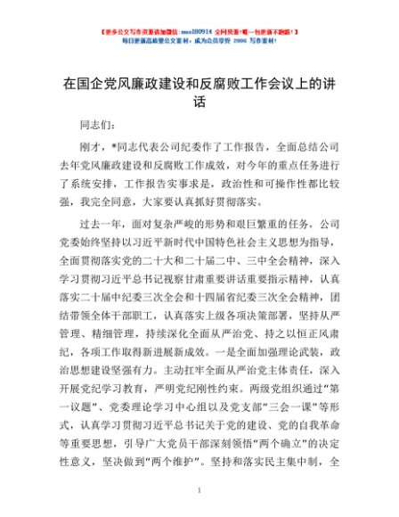 / 在国企党风廉政建设和反腐败工作会议上的讲话