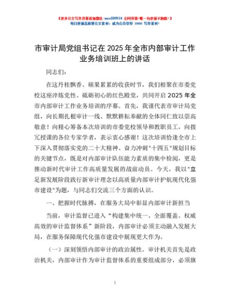 / 市审计局党组书记在2025年全市内部审计工作业务培训班上的讲话