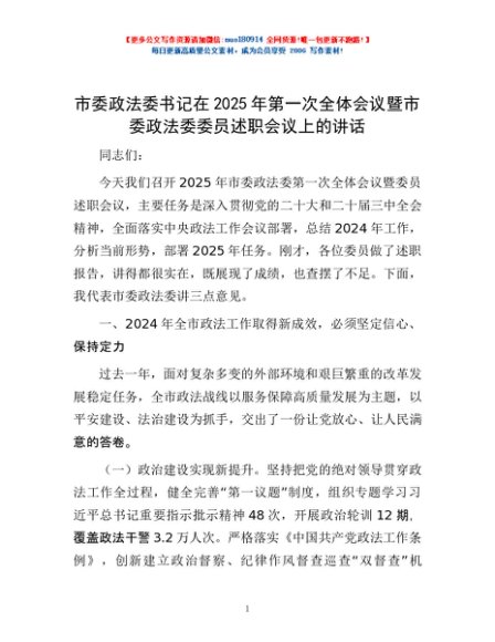 / 市委政法委书记在2025年第一次全体会议暨市委政法委委员述职会议上的讲话