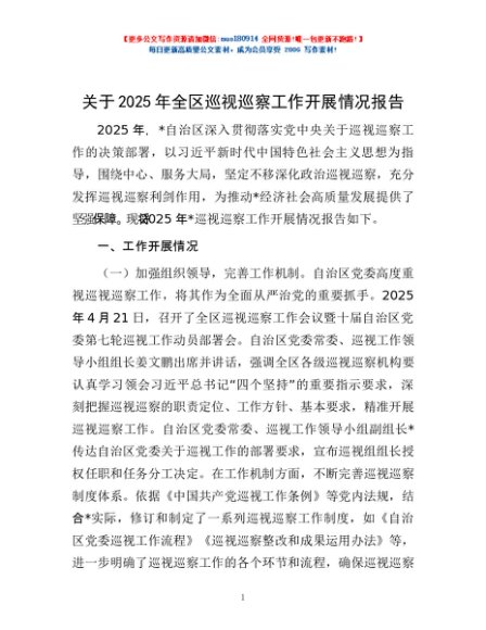/ 关于2025年全区巡视巡察工作开展情况报告