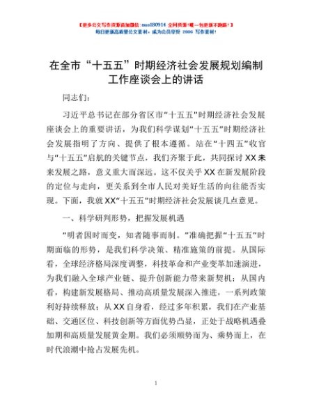 / 在全市“十五五”时期经济社会发展规划编制工作座谈会上的讲话
