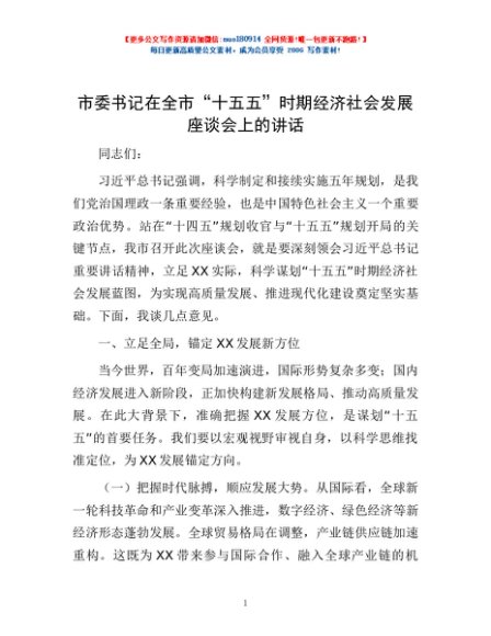 / 市委书记在全市“十五五”时期经济社会发展座谈会上的讲话
