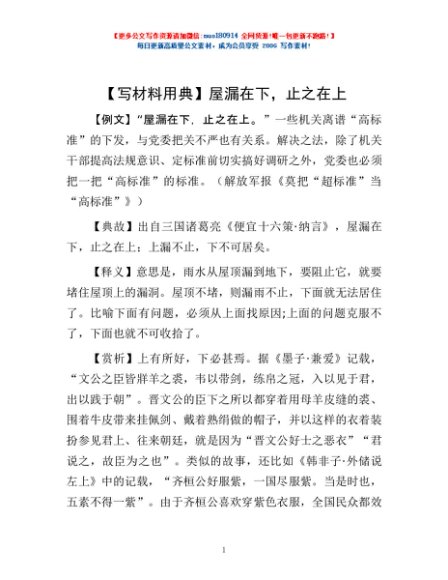 / 【写材料用典】屋漏在下,止之在上