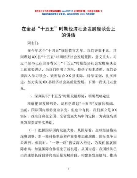 / 在全县“十五五”时期经济社会发展座谈会上的讲话