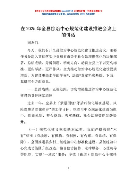 / 在2025年全县综治中心规范化建设推进会议上的讲话