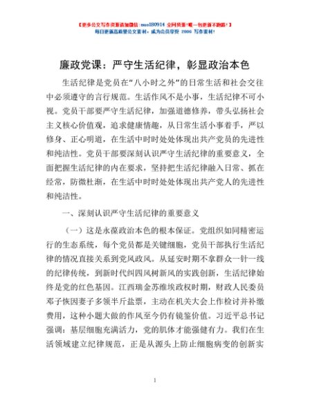 / 廉政党课:严守生活纪律,彰显政治本色