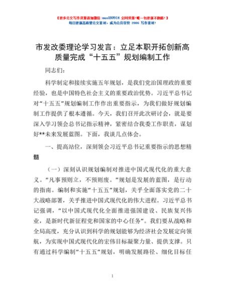 / 市发改委理论学习发言:立足本职 开拓创新 高质量完成“十五五”规划编制工作