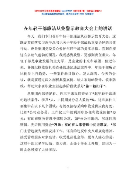 / 在年轻干部廉洁从业警示教育大会上的讲话