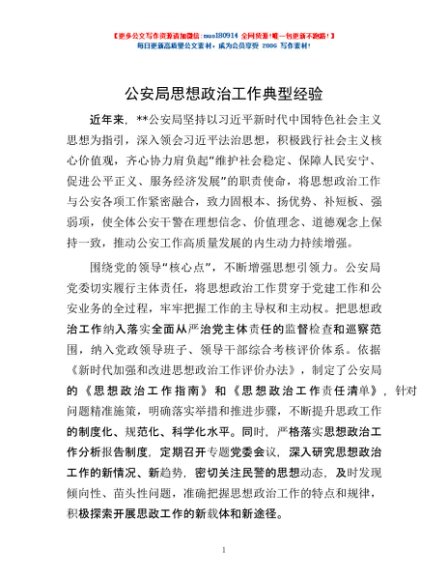 / 公安局思想政治工作典型经验