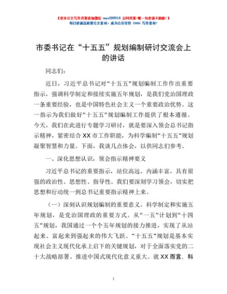 / 市委书记在“十五五”规划编制研讨交流会上的讲话