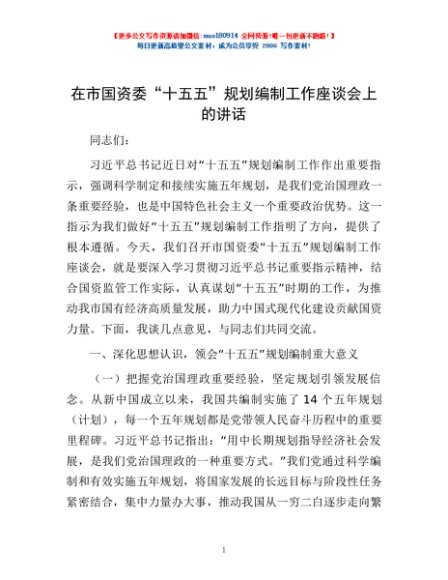 / 在市国资委“十五五”规划编制工作座谈会上的讲话