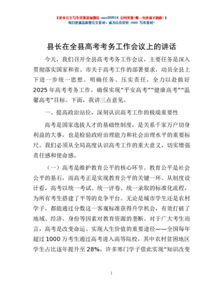 / 县长在全县高考考务工作会议上的讲话