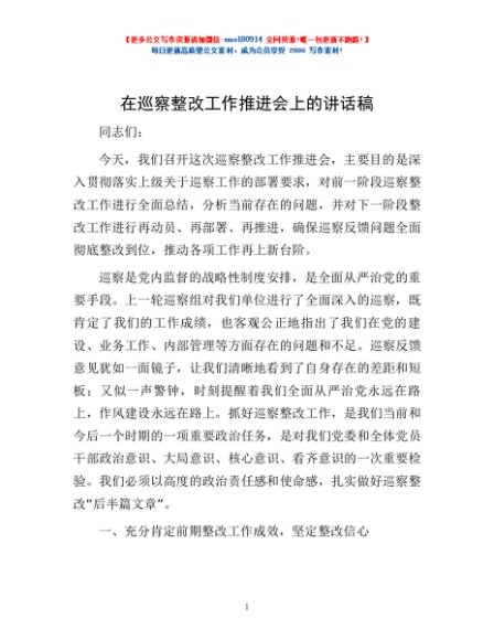 / 在巡察整改工作推进会上的讲话稿