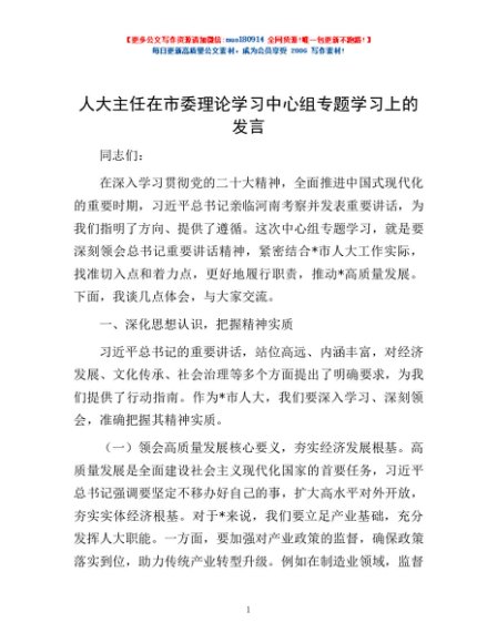 / 人大主任在市委理论学习中心组专题学习上的发言