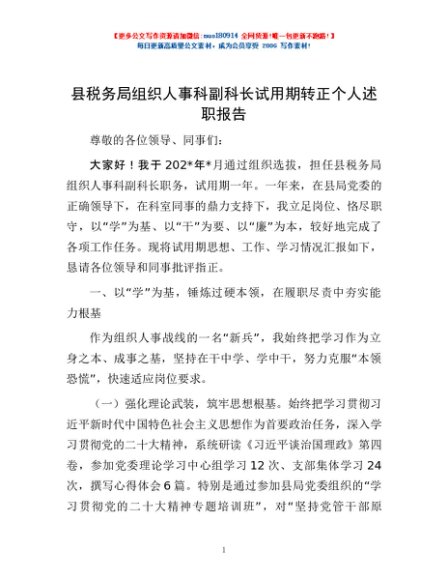 / 县税务局组织人事科副科长试用期转正个人述职报告