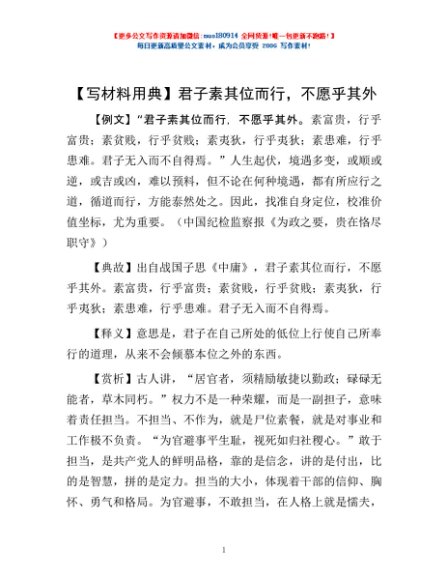 / 【写材料用典】君子素其位而行,不愿乎其外
