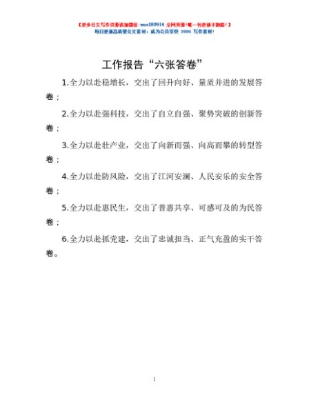 工作报告“六张答卷”