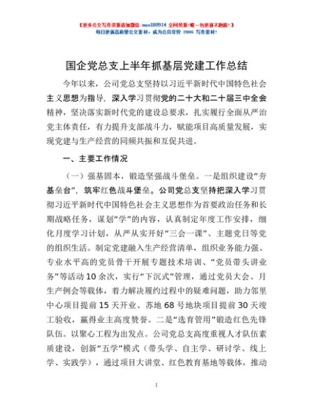 / 国企党总支上半年抓基层党建工作总结