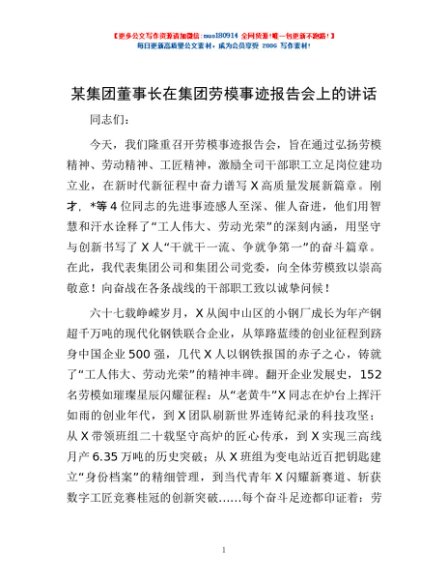 / 某集团董事长在集团劳模事迹报告会上的讲话