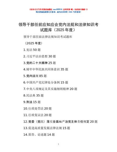 / 领导干部任前应知应会党内法规和法律知识考试题库(2025年度)