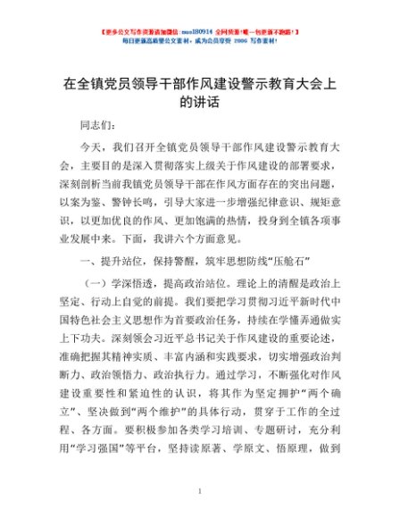 / 在全镇党员领导干部作风建设警示教育大会上的讲话