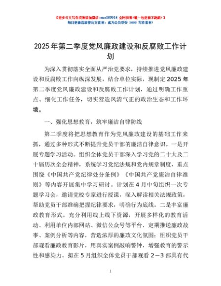 / 2025年第二季度党风廉政建设和反腐败工作计划