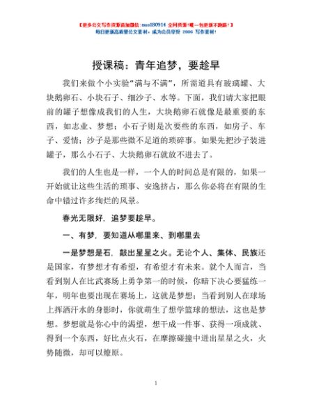 授课稿:青年追梦,要趁早
