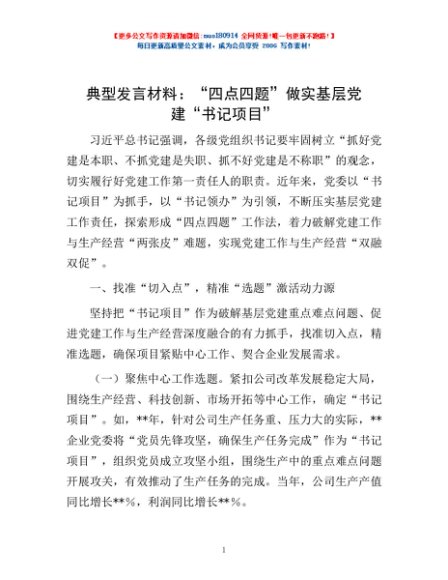 典型发言材料:“四点四题”做实基层党建“书记项目”