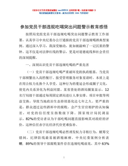 / 参加党员干部违规吃喝突出问题警示教育感悟