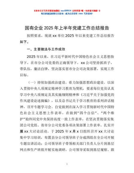 / 国有企业2025年上半年党建工作总结报告