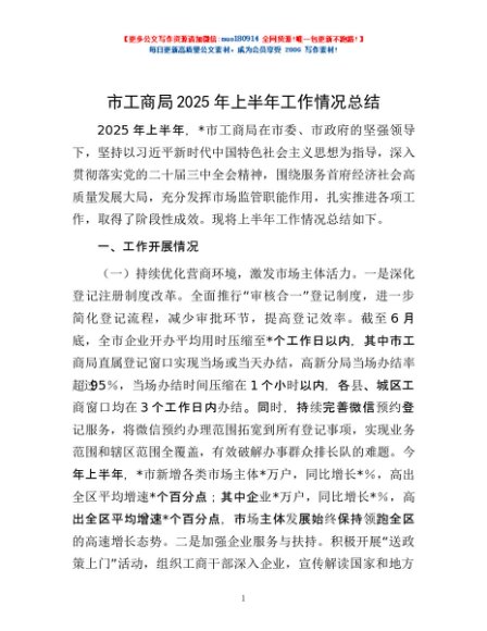 / 市工商局2025年上半年工作情况总结