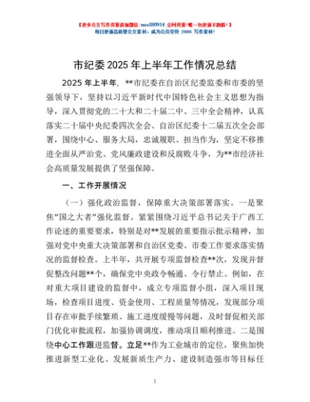 / 市纪委2025年上半年工作情况总结