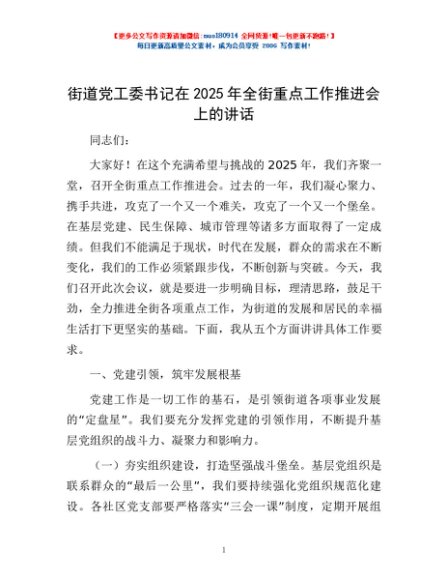 / 街道党工委书记在2025年全街重点工作推进会上的讲话