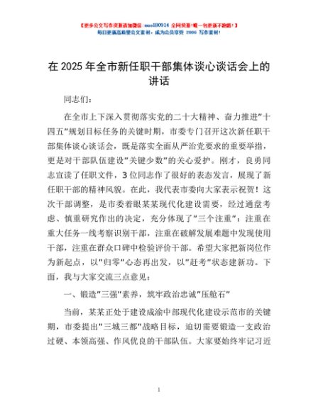 / 在2025年全市新任职干部集体谈心谈话会上的讲话