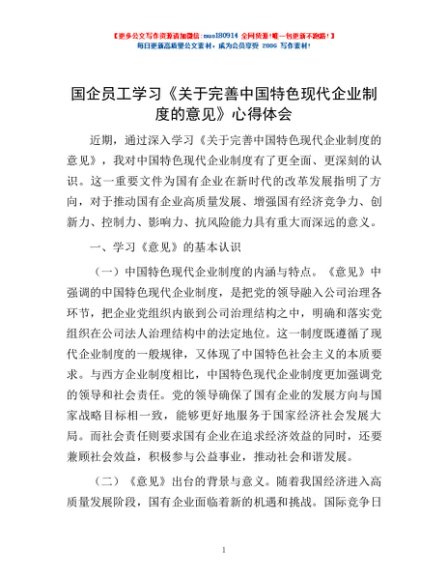 / 国企员工学习《关于完善中国特色现代企业制度的意见》心得体会
