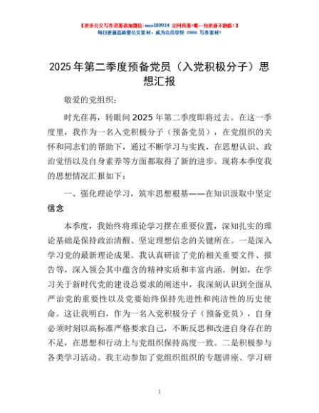 / 2025年第二季度预备党员(入党积极分子)思想汇报