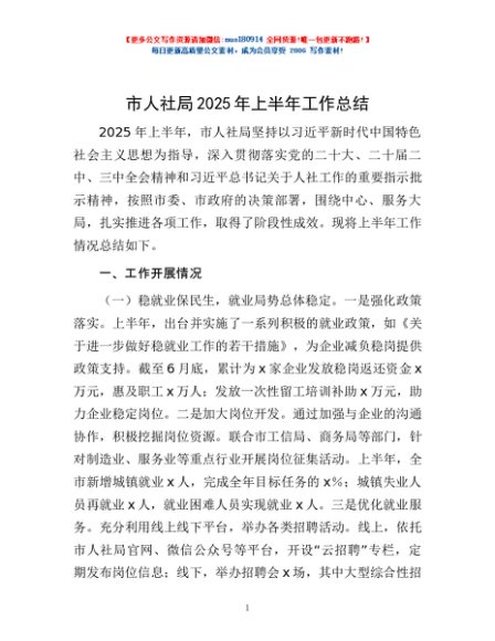 / 市人社局2025年上半年工作总结