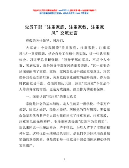 / 党员干部“注重家庭,注重家教,注重家风”交流发言