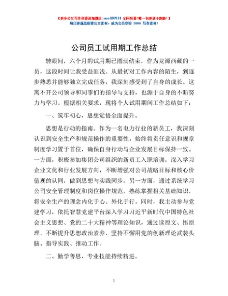 / 公司员工试用期工作总结